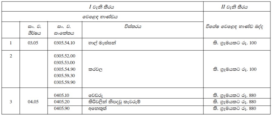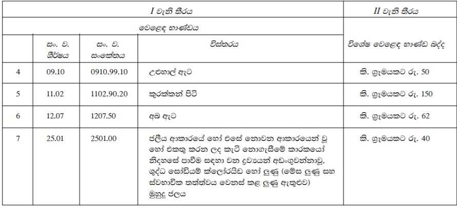 ඒ භාණ්ඩ රැසක් සඳහා අය කෙරෙන විශේෂ වෙළඳ භාණ්ඩ බද්දක් නියම කරමින්.
